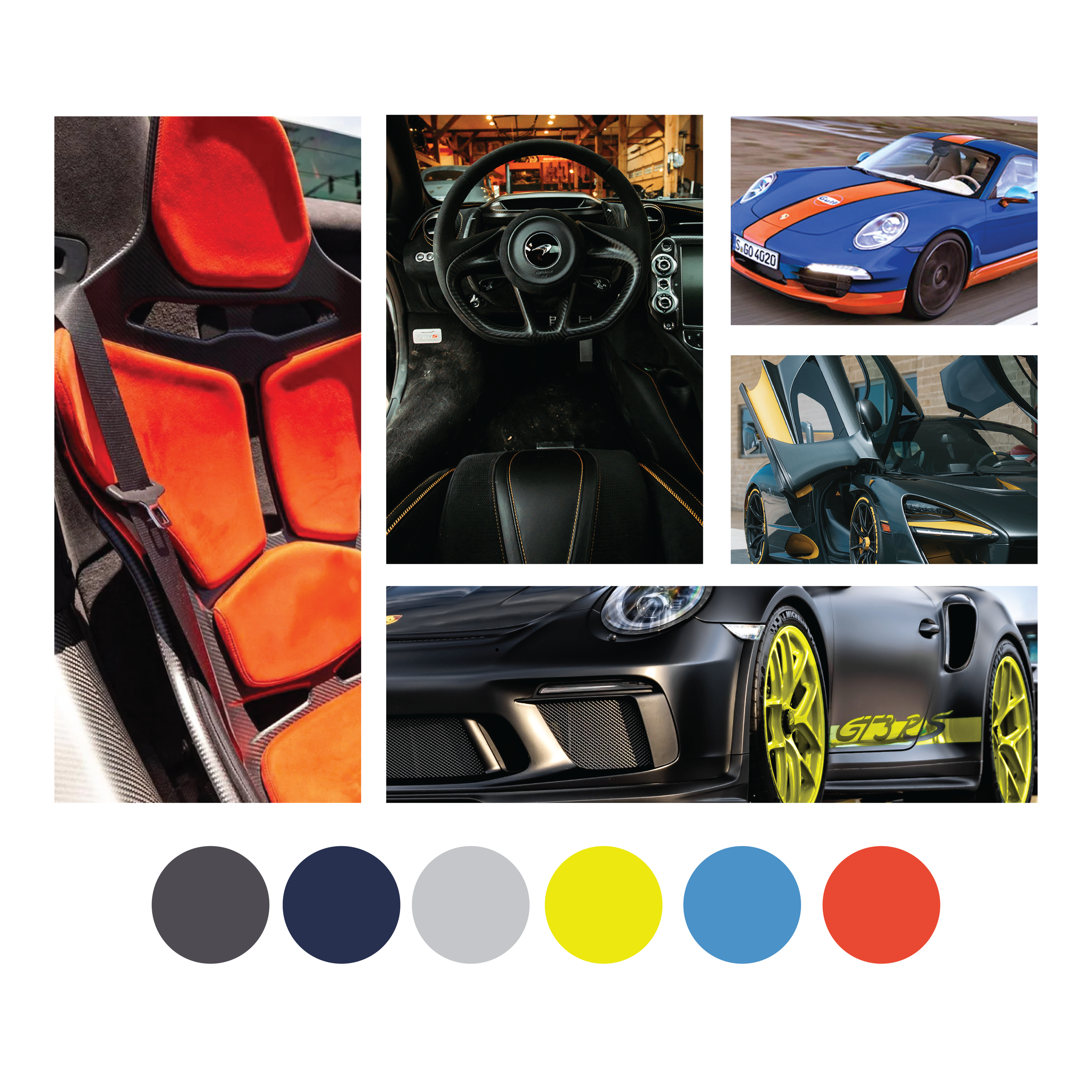 *Inspired by the color offerings of Mcclaren & Porsche. My task was to conceptualize a color strategy that resembles stealth, speed & cushion. The following are the shifting gears that made it to U.S and EURO market.